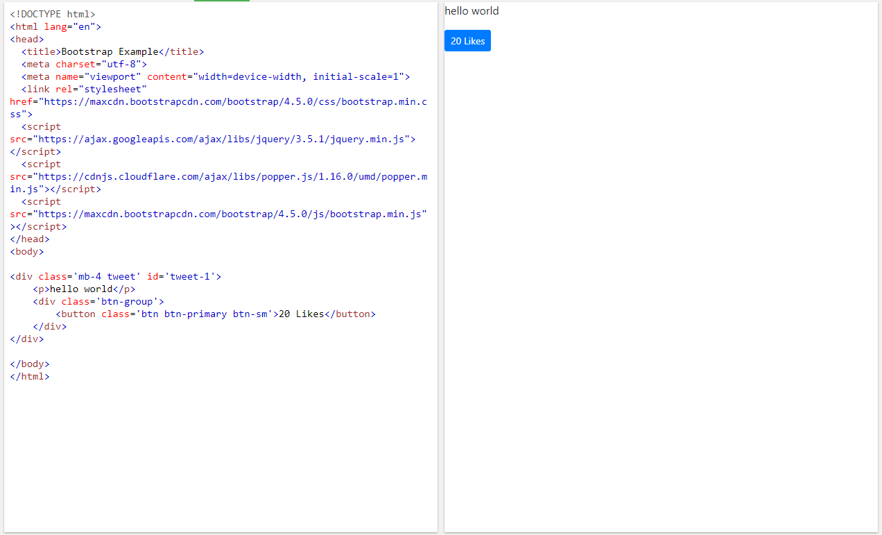<button class='btn btn-primary btn-sm'>20 Likes</button>