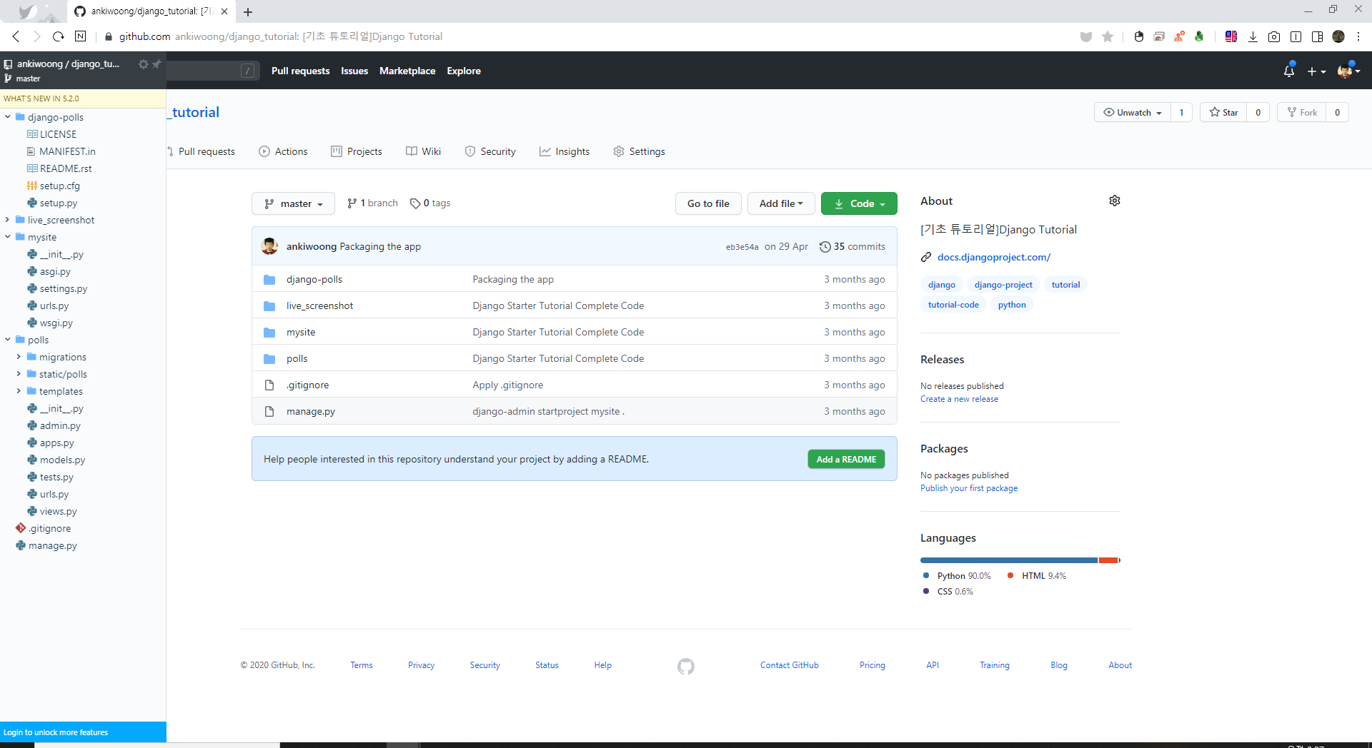 파일탐색기와 같이 옆에 확장탭이 생겨서 해당 레파지토리에 디렉토리와 파일을 한눈에 알아 볼 수 있다.