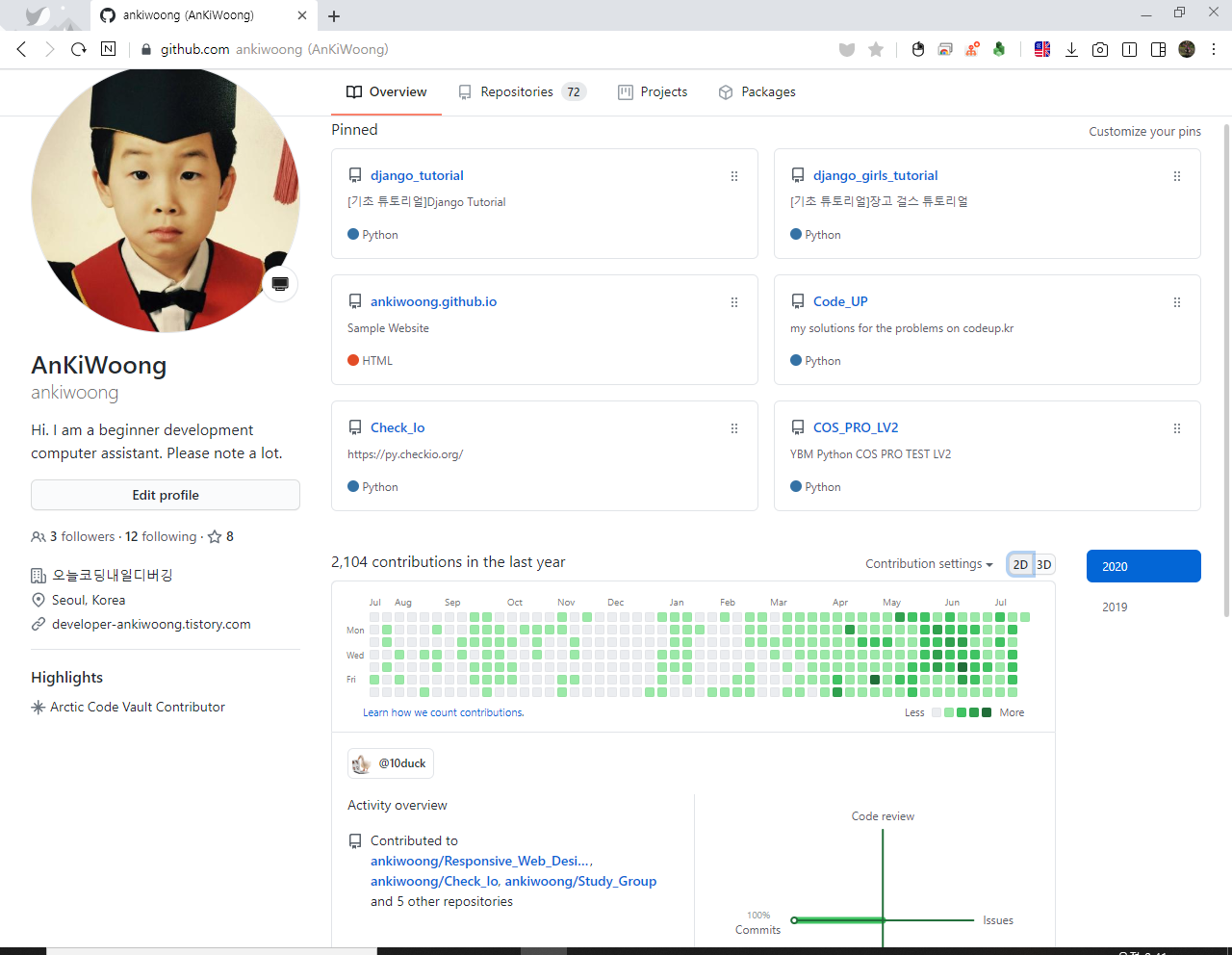 GitHub 메인페이지에 잔디 심기가 3D로 화려하게 변해서 이쁜 느낌이 들게 해주고 시각적으로 확 들어오게 해준다.