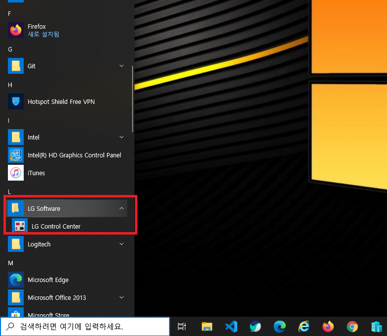 시작 > LG Software > LG Control Center