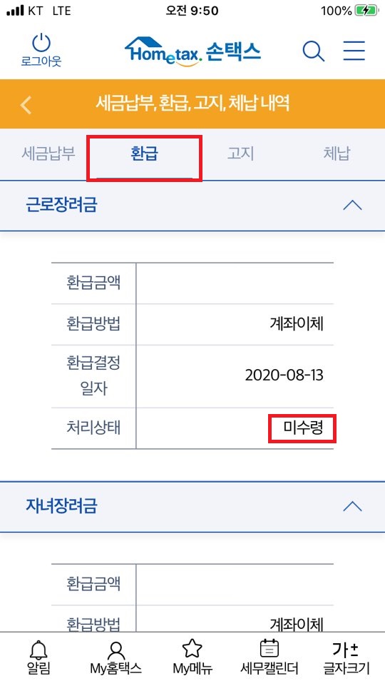 환급부분에 금액이 나오고 미수령이 나오면 환급금액이 나온다고 알고 있으시면 됩니다.