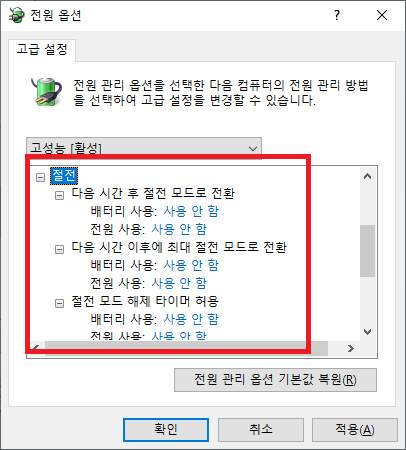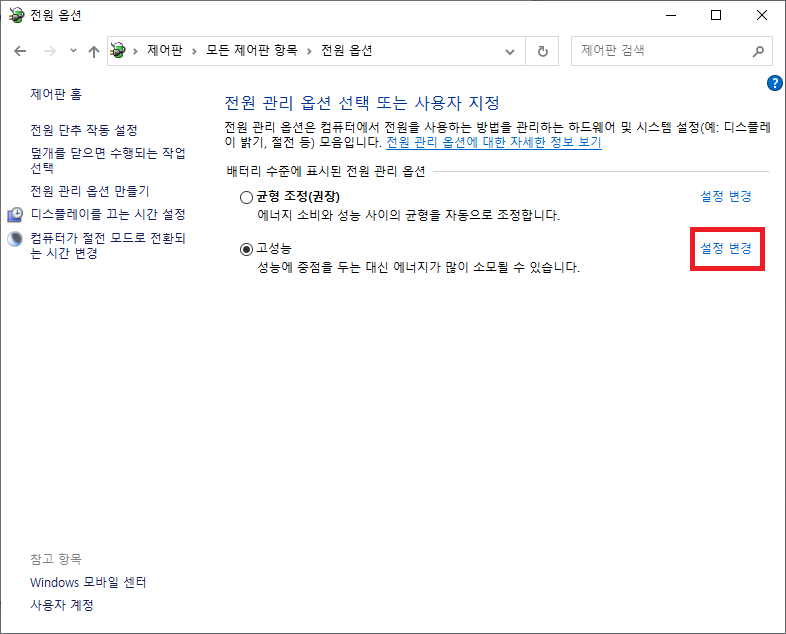 Windows 10에 각 전원 모드는 아래를 참고하면 좋을것이다.