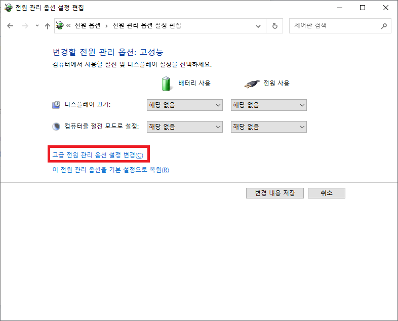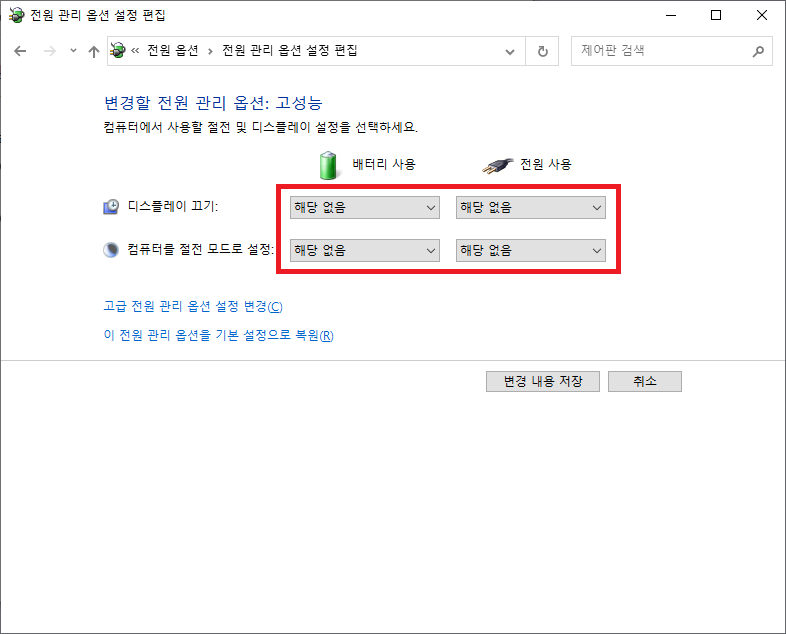 4. 디스플레이 끄기 / 컴퓨터를 절전 모드로 설정 > 해당 없음