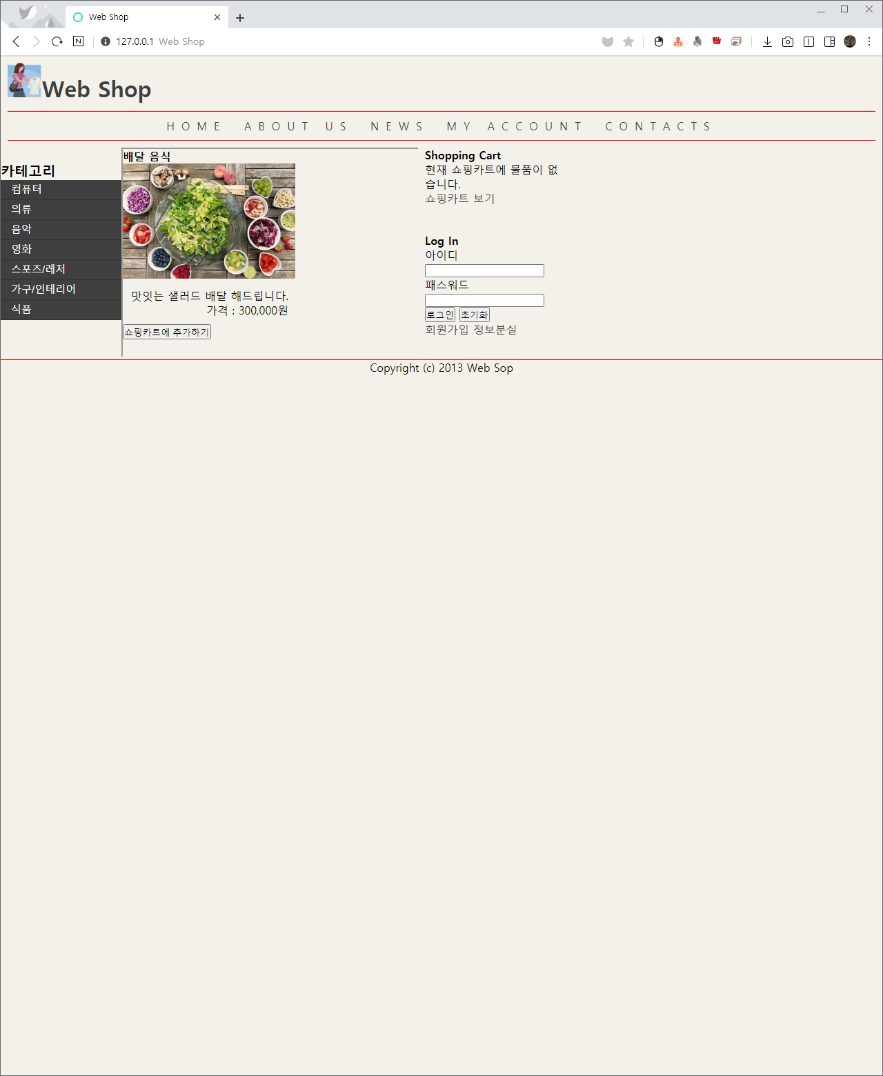 본문에서 구현된 작은 웹 사이트에서는 아직 완성하지 못한 페이지가 많다.