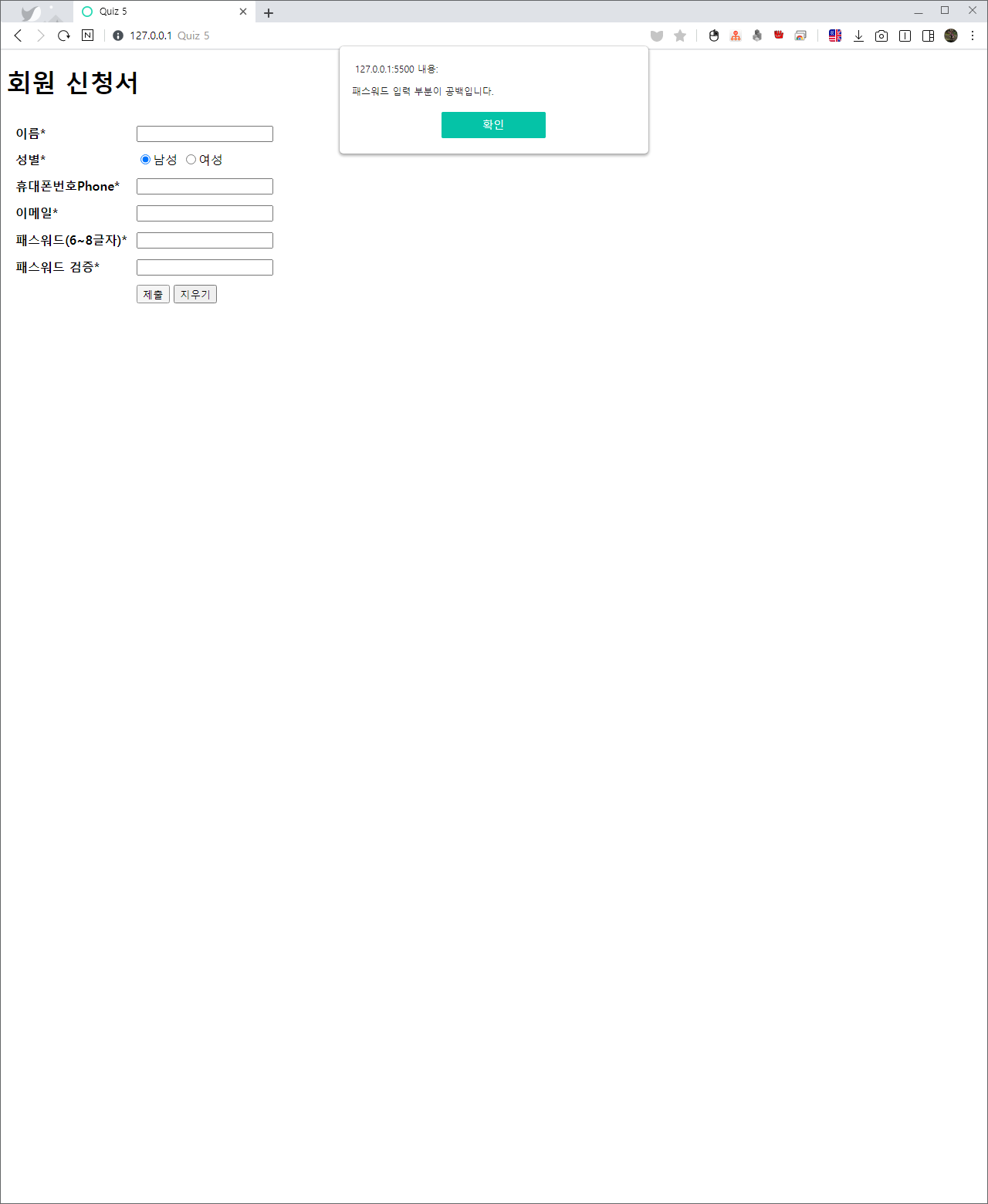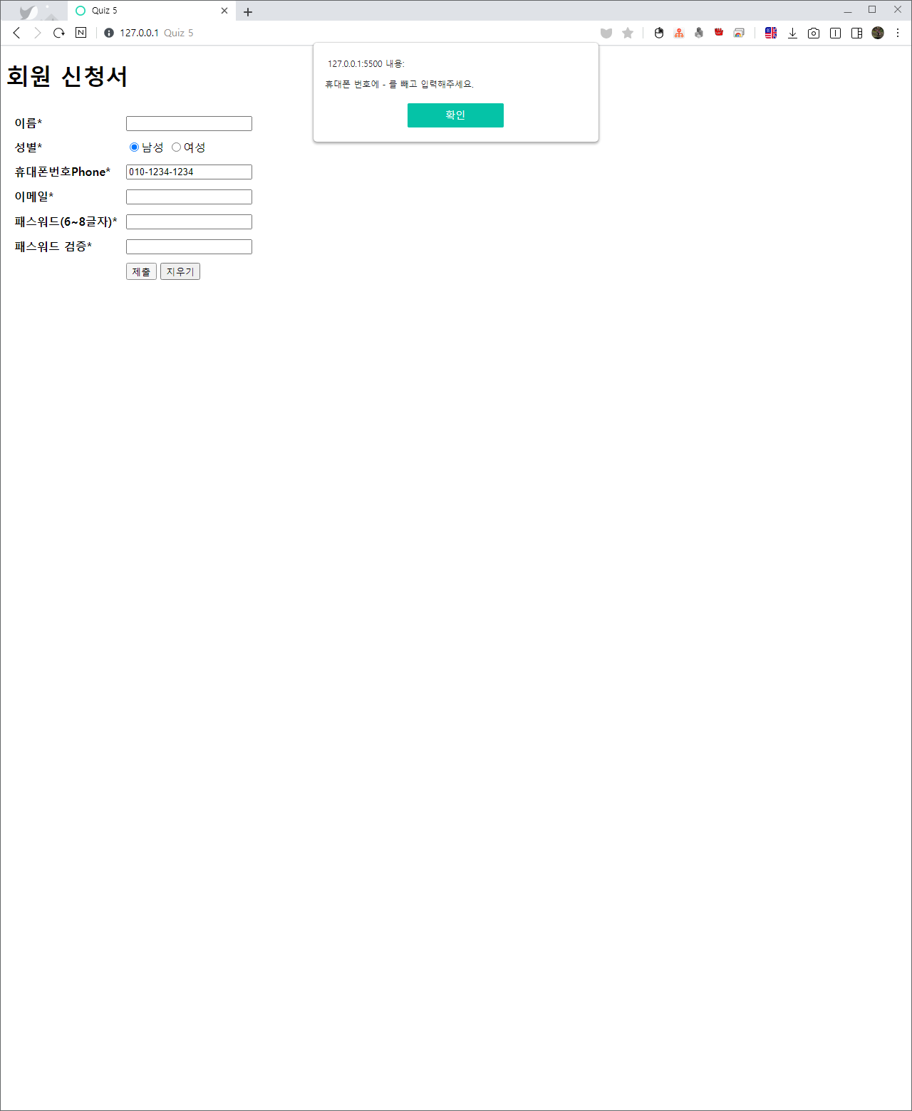 alert("휴대폰 입력 부분이 공백입니다.");