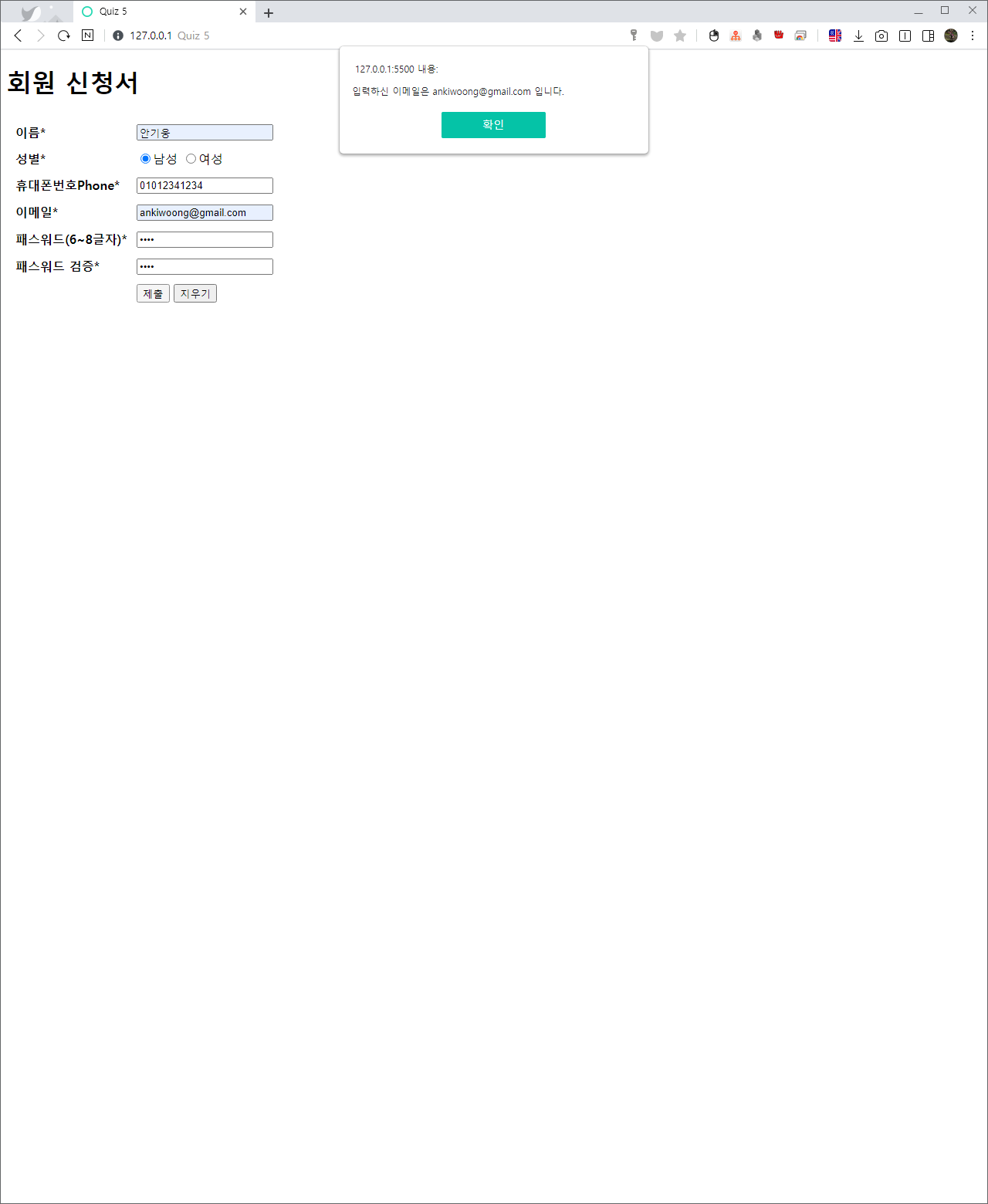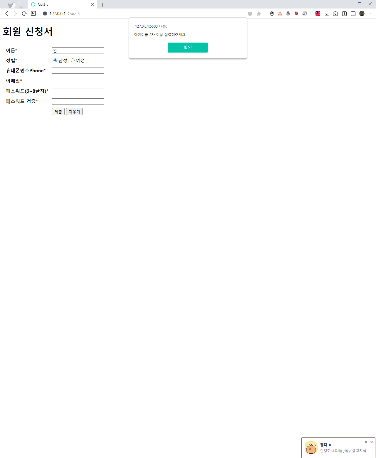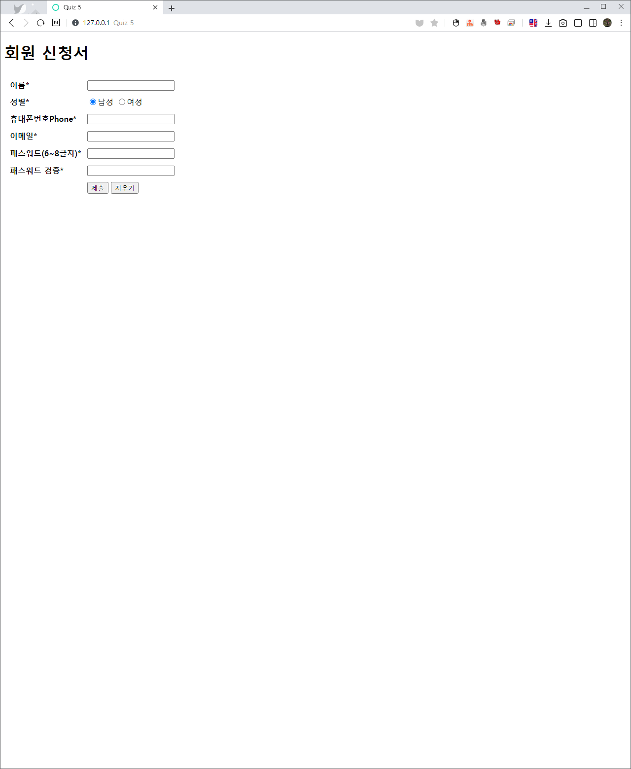 회원 신청서를 받는 웹 페이즈를 작성하여 본다.