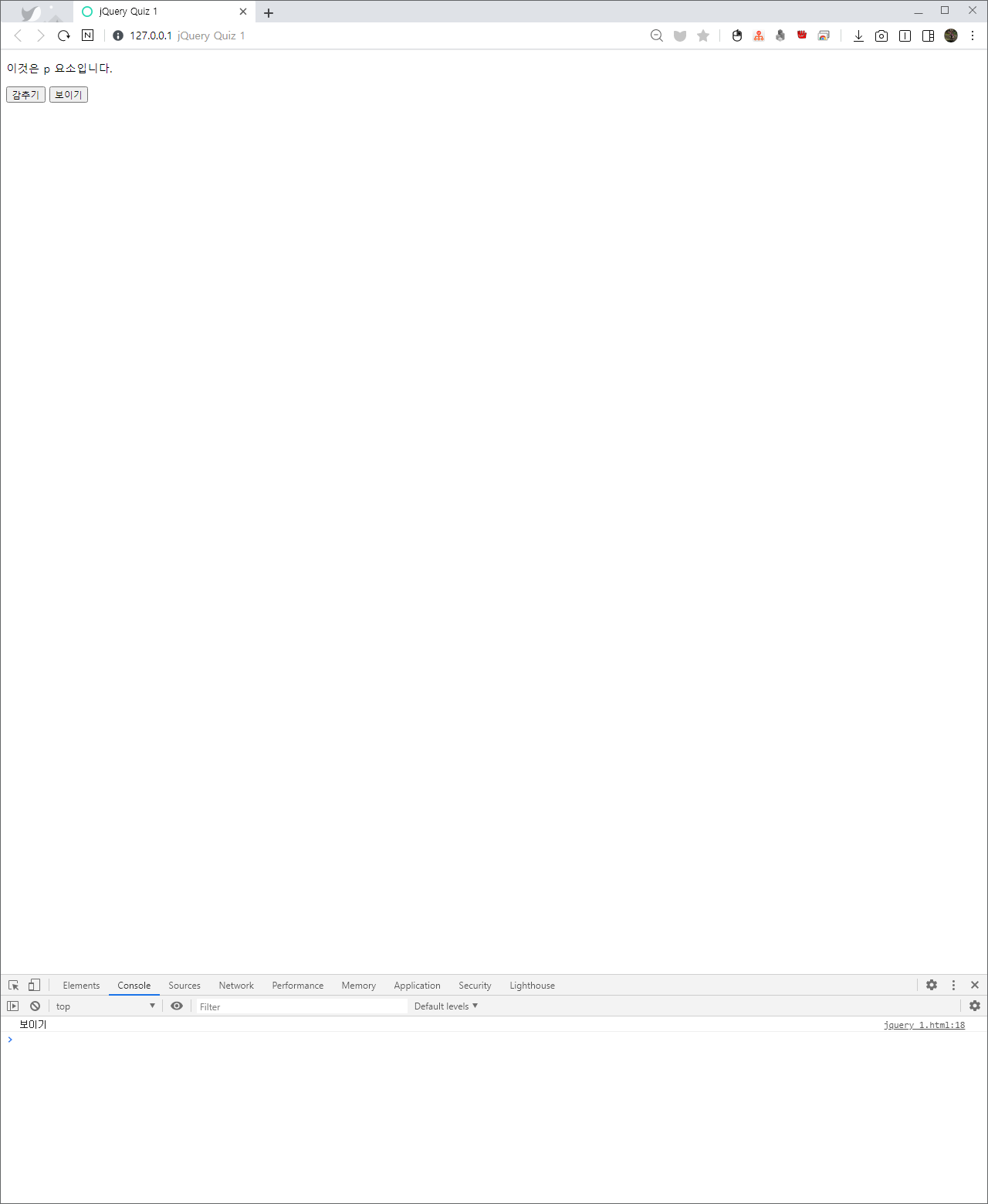 다음과 같은 화면을 가지는 jQuery 소스를 작성하라.