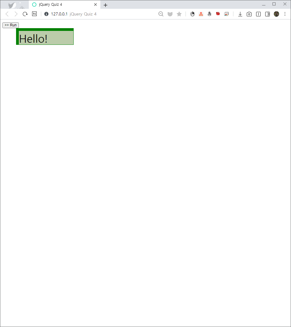 animate() 함수를 이용해 다음과 같은 결과를 생성하는 jQuery 코드를 작성하라.