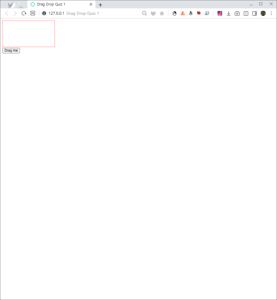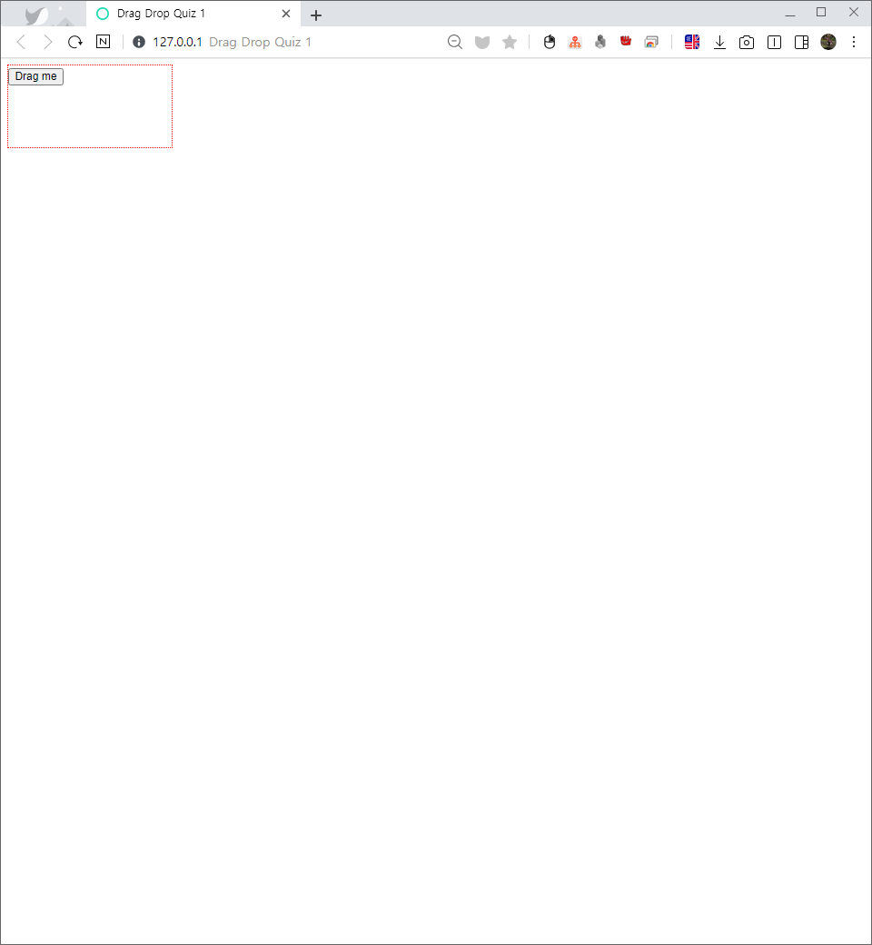다음 그림처럼 버튼을 <div> 안으로 드래그하여 드롭하는 웹 페이지를 작성해 보자.