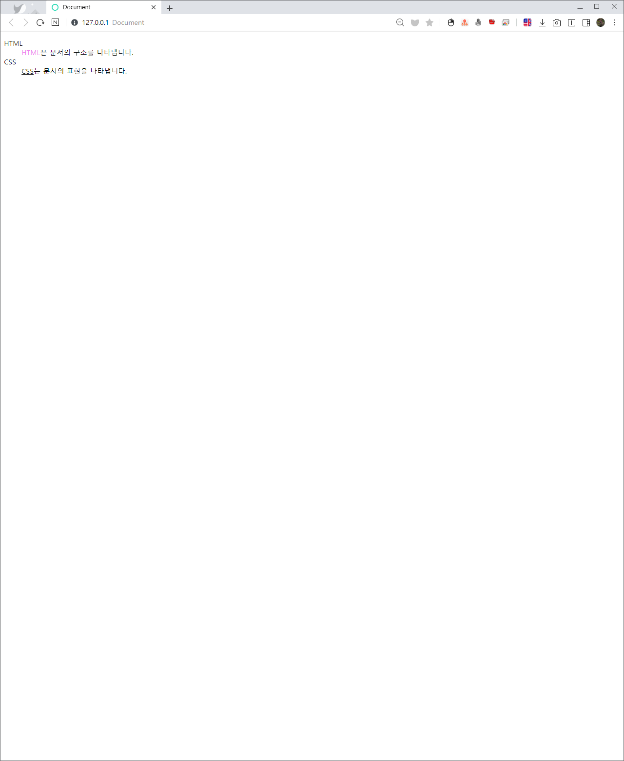 <dd><span id="violet">HTML</span>은 문서의 구조를 나타냅니다.</dd>