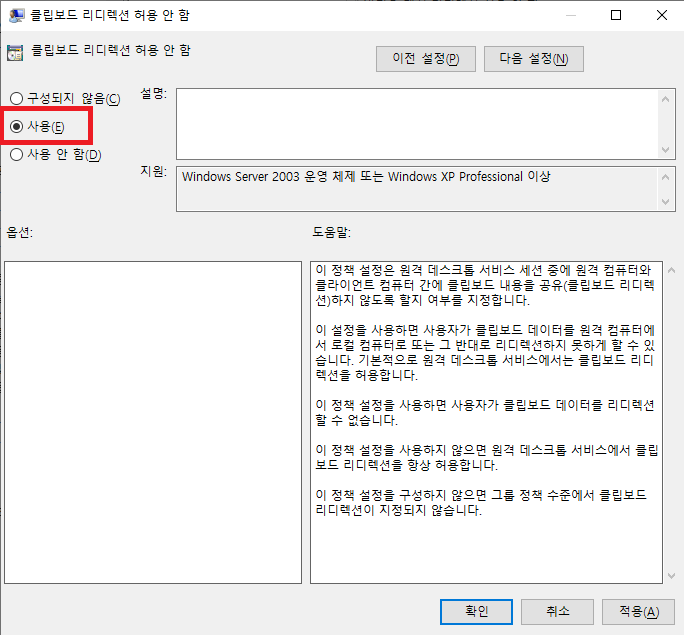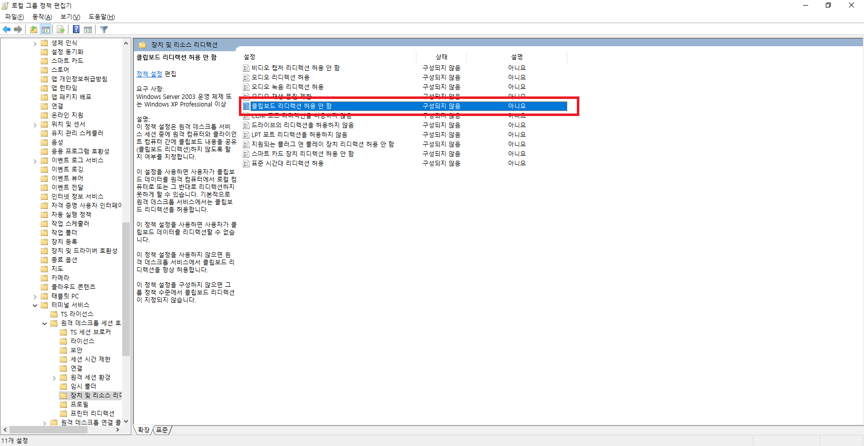 회사 PC에 있는 데이터를 자택근무 PC로 복사 붙여넣기가 되므로 보안적 이슈가 발생하였고