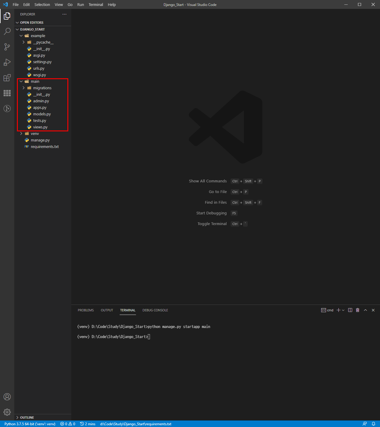 python manage.py startapp main