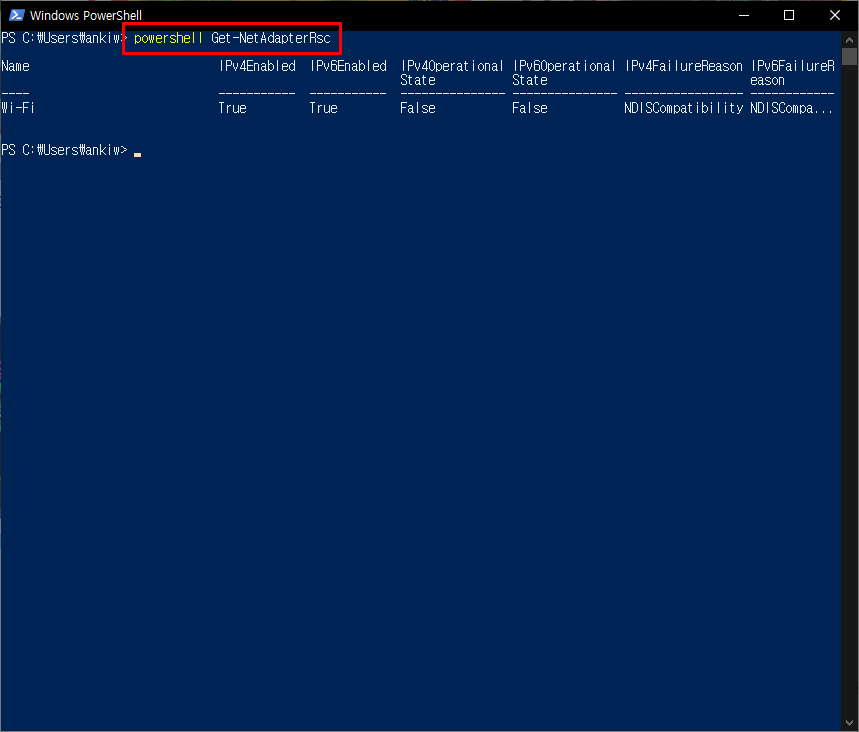 4. 네트워크 어댑터에 대해 Rsc 사용 안 함 설정(2번에서 확인한 WIFI Name)