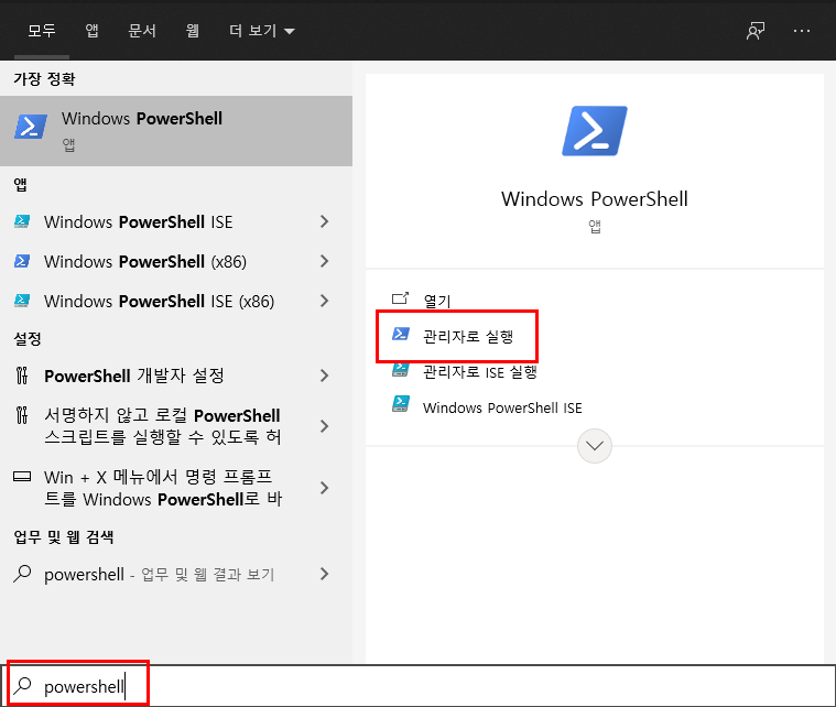 1. 시작 > powershell