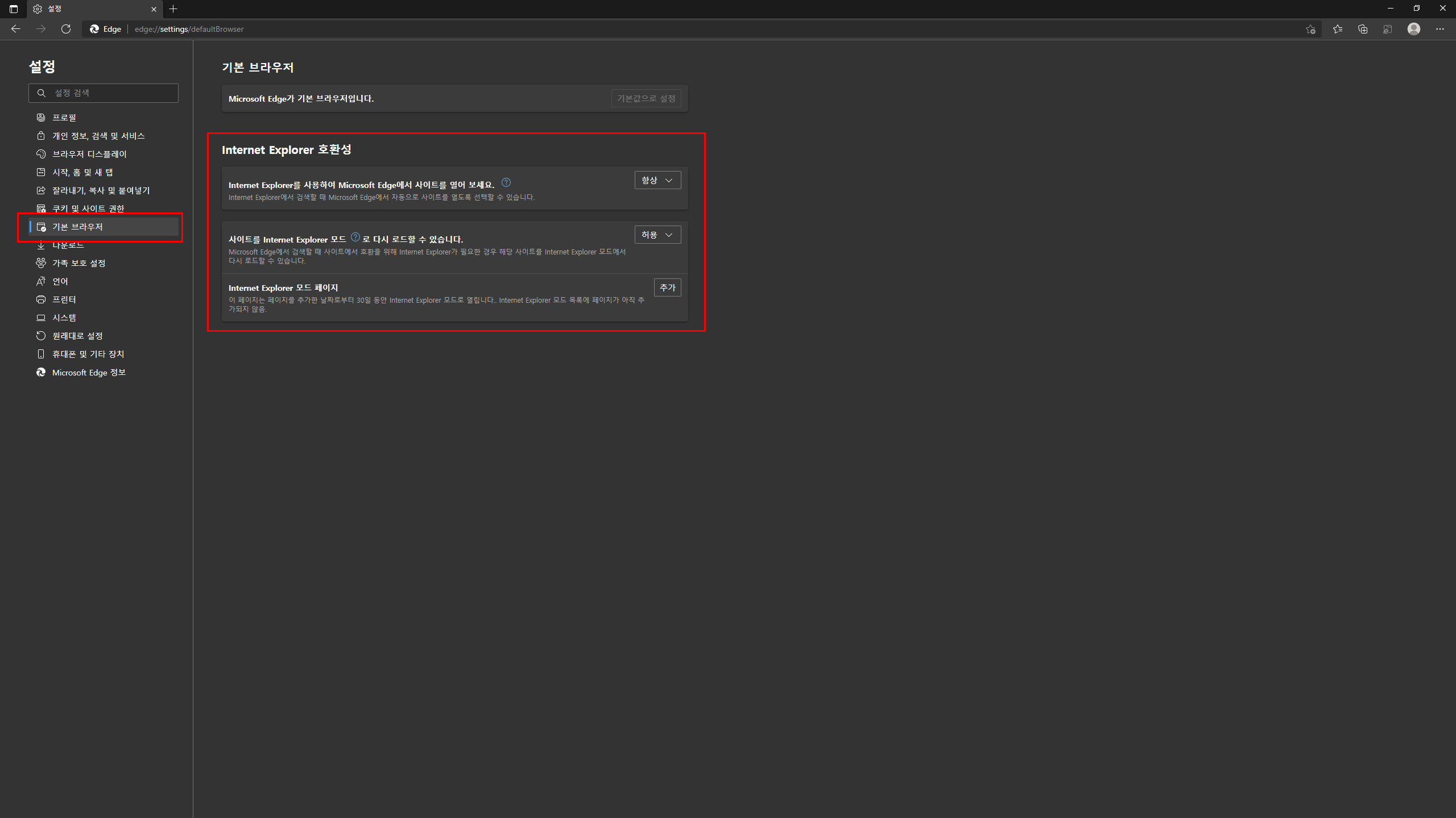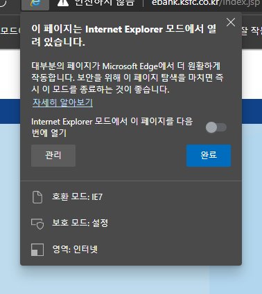 이와 같이 EDGE에서도 호환모드를 통해 사용을 할 수 있는 좋은 기능이 탑재되어서 더욱 더 사용이 편해졌습니다.