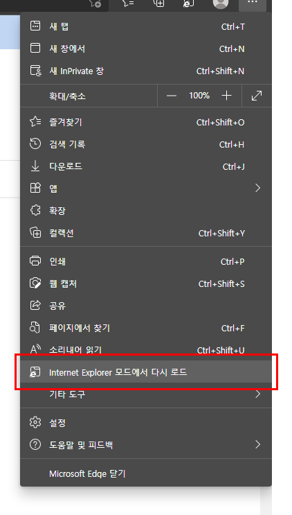 5. Internet Explorer 모드에서 다시 로드