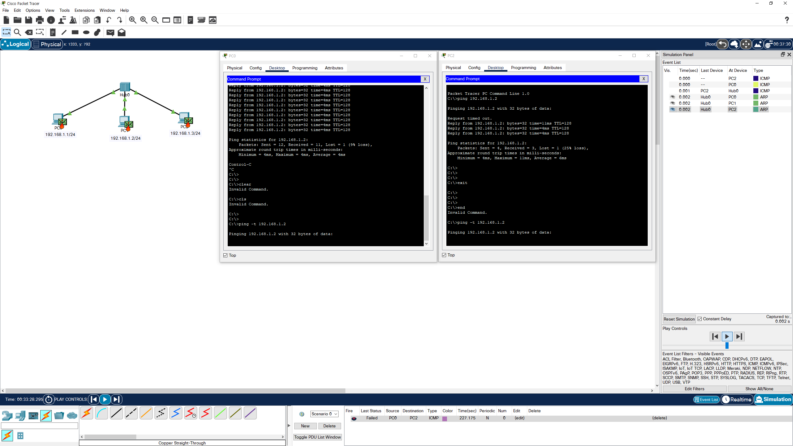 - PC2 192.168.1.2/24