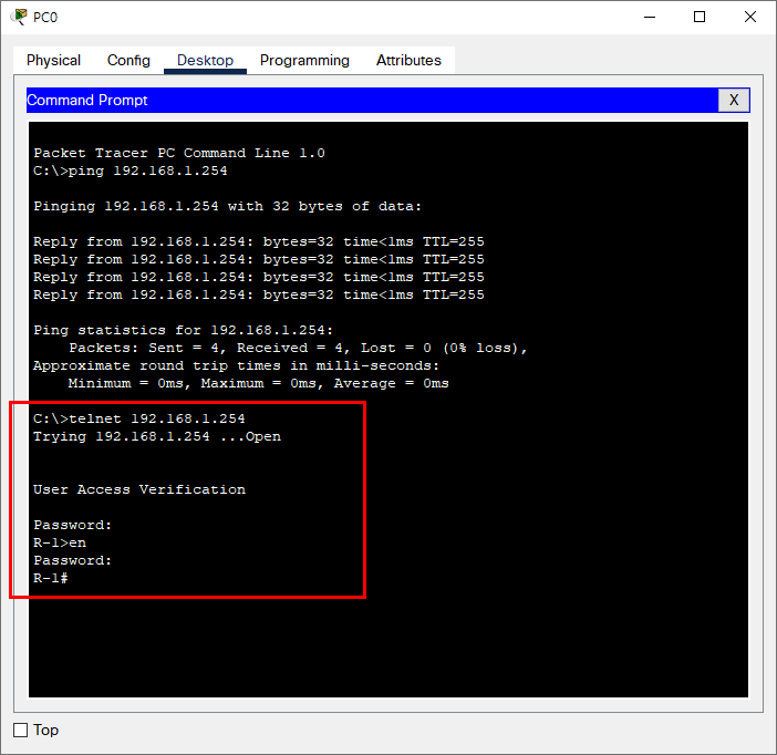 Reply from 192.168.1.254: bytes=32 time<1ms TTL=255