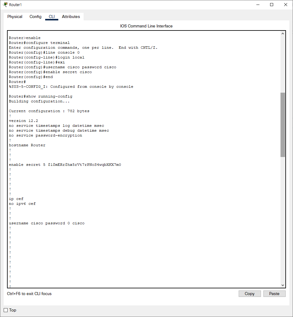 username cisco password 0 cisco