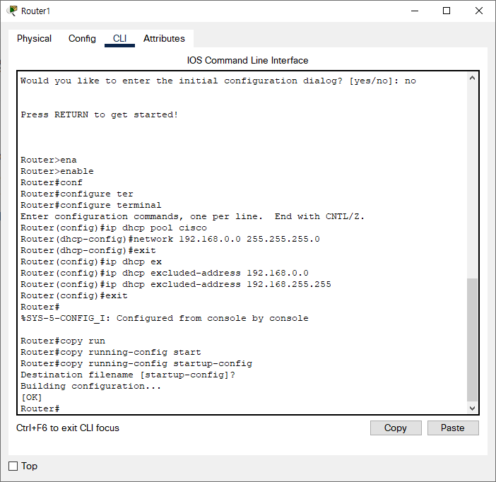 Router(config)#ip dhcp excluded-address 192.168.0.0
