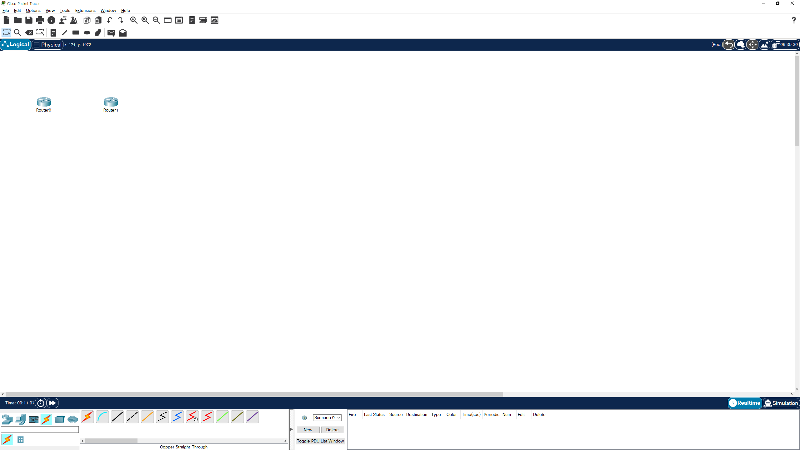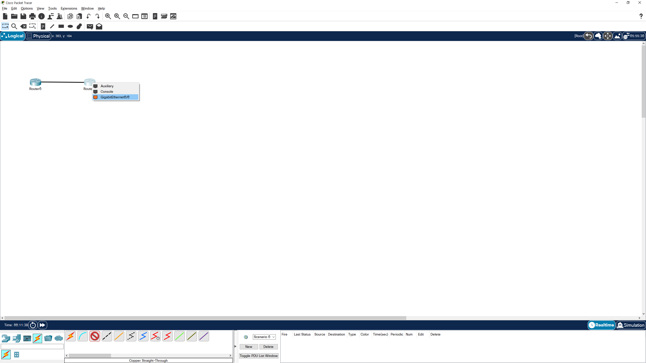 1. Connect R1 and R2 by their GigabitEthernet0/0 interfaces