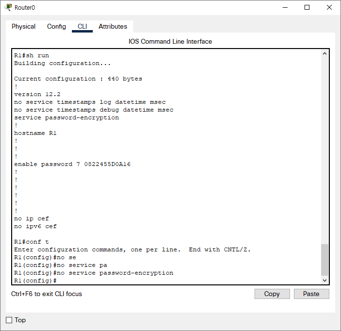 7. Disable password encryption on each router.