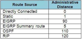 OSPF, RIP. 및 내부 EIGRP 정상적인 작동 조건에서 라우팅 테이블에 어떤 라우팅 프로토콜이 설치되어 있는가?)