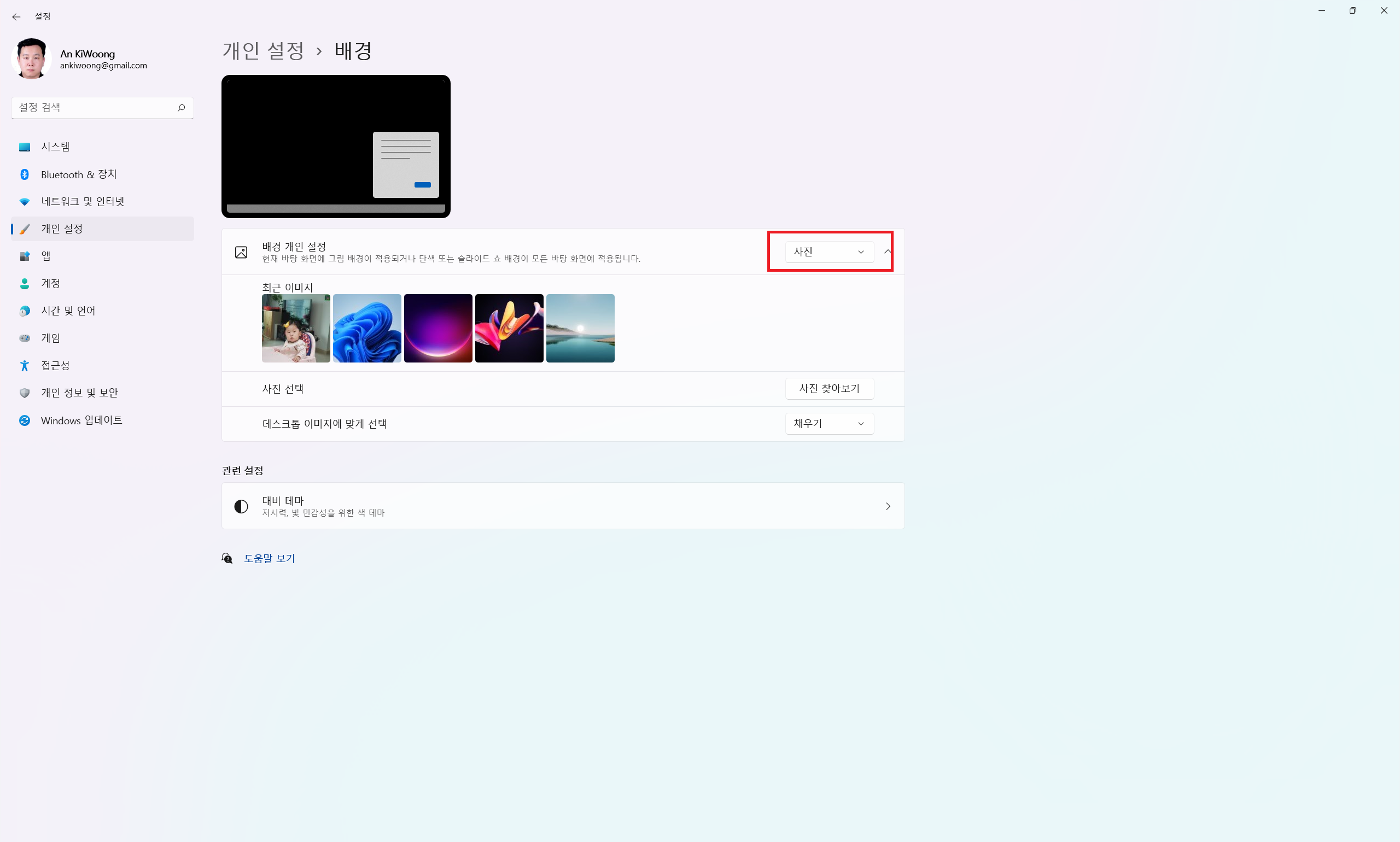 2. 배경 개인 설정 > 사진 > 사진 불러오기
