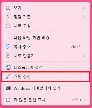 단 Windows 11은 Windows 10과 위치가 틀려서 아래의 설정을 참고해서 설정 하면 된다.