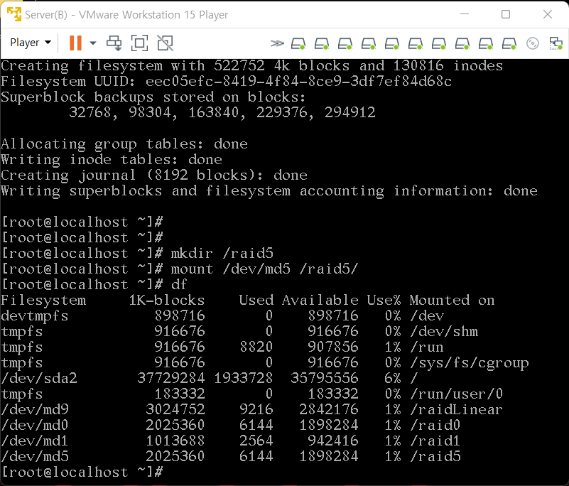 8. /etc/fstab 설정(Linear RAID / RAID 0 / RAID 1 / RAID 5)