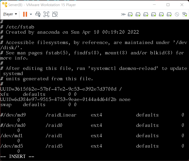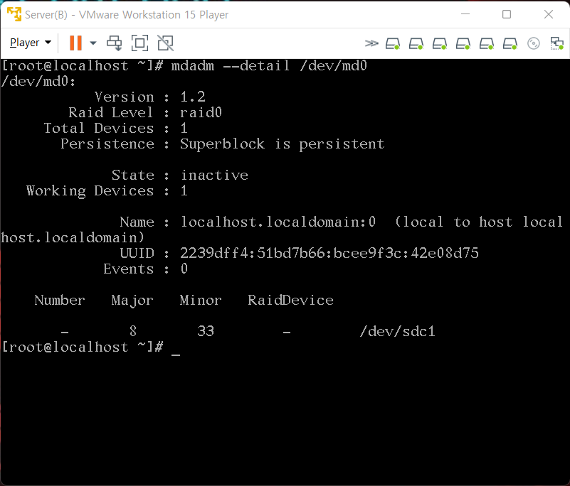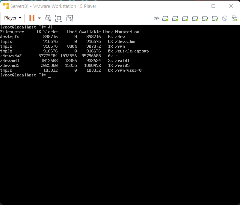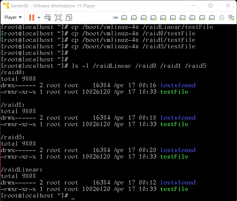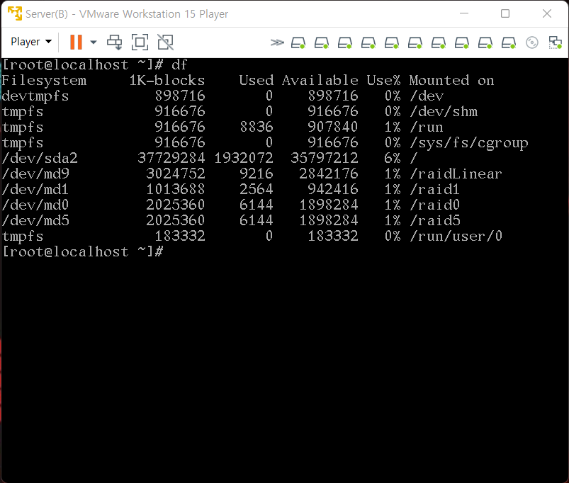 4. Linear RAID 작동 상태 확인