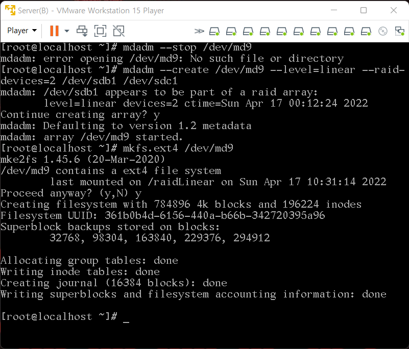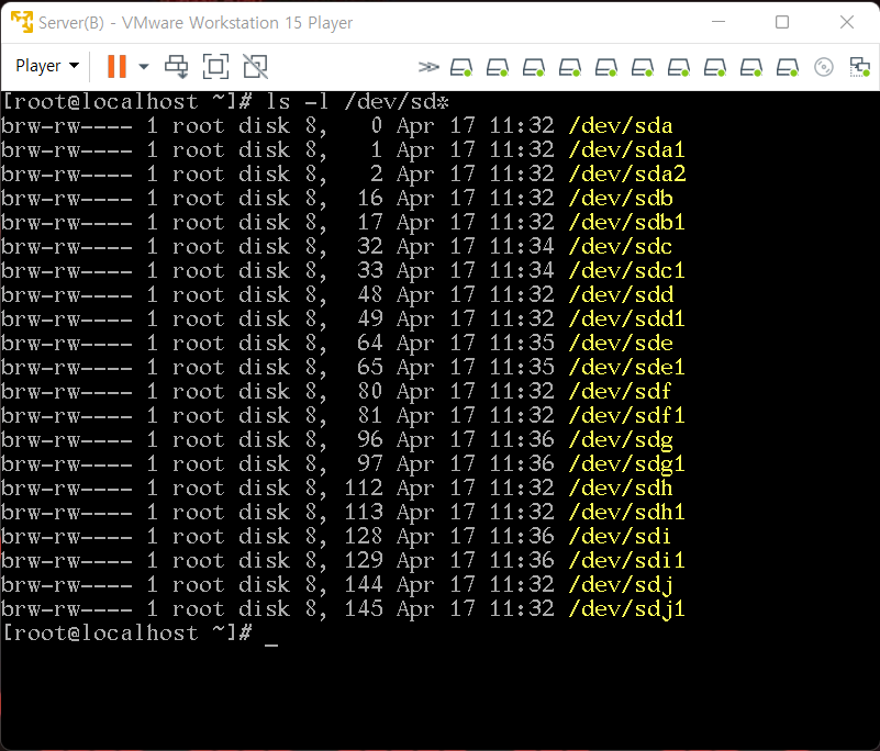3. 신규 하드 디스크 fdisk 작업(/dev/sdc, /dev/sde, /dev/sdg, /dev/sdi)