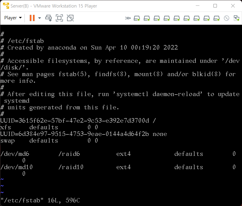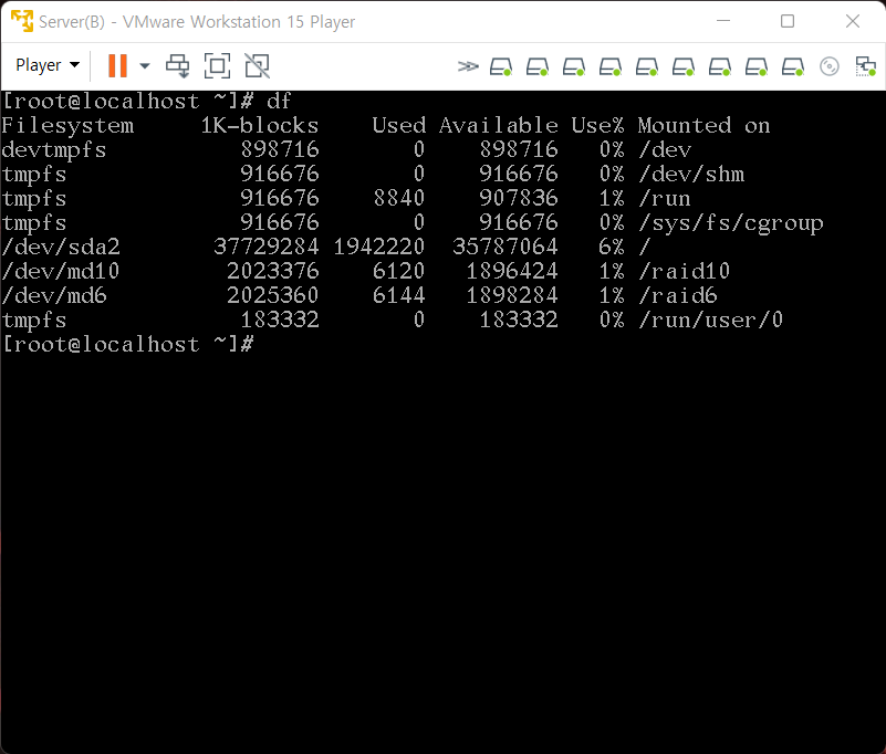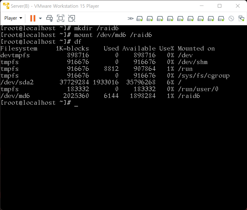 6. RAID 6 구성(/dev/sdb, /dev/sdc, /dev/sdd, /dev/sde)