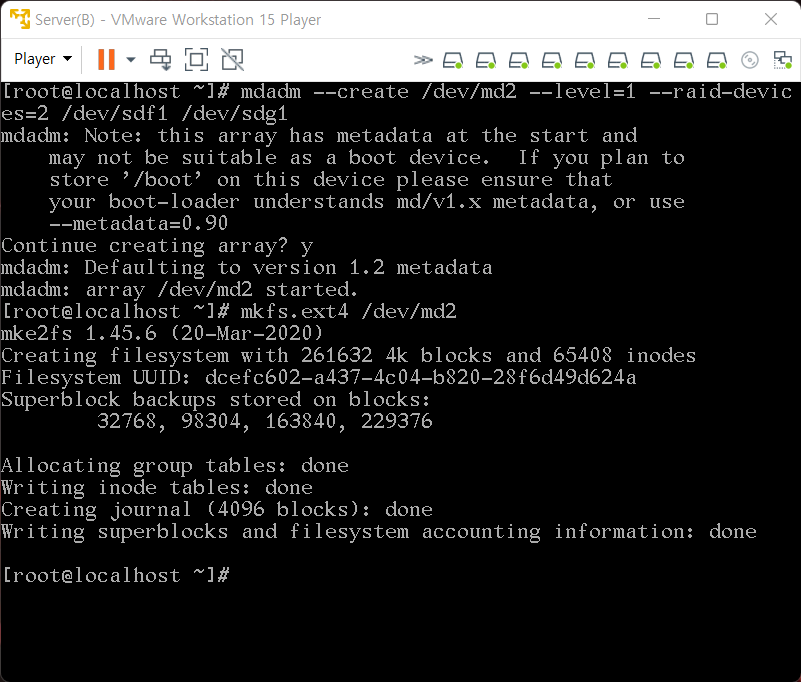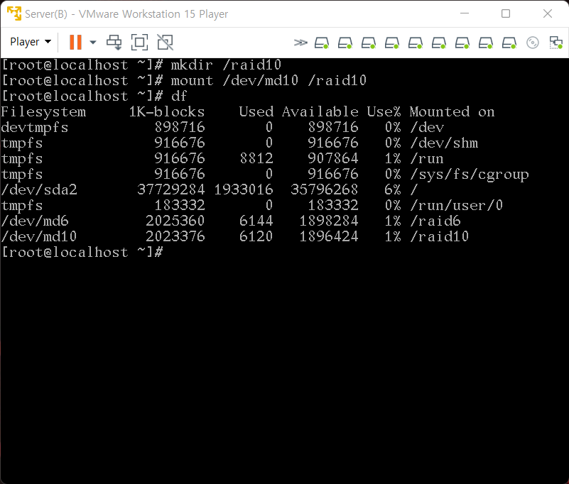 8. RAID 1+0 구성(/dev/sdf, /dev/sdg, /dev/sdh, /dev/sdi)