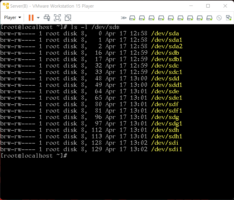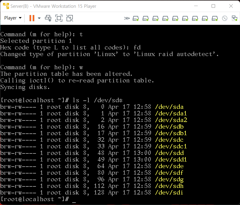 3. fdisk 작업(/dev/sdb, /dev/sdc, /dev/sdd, /dev/sde, /dev/sdf, /dev/sdg, /dev/sdh, /dev/sdi)
