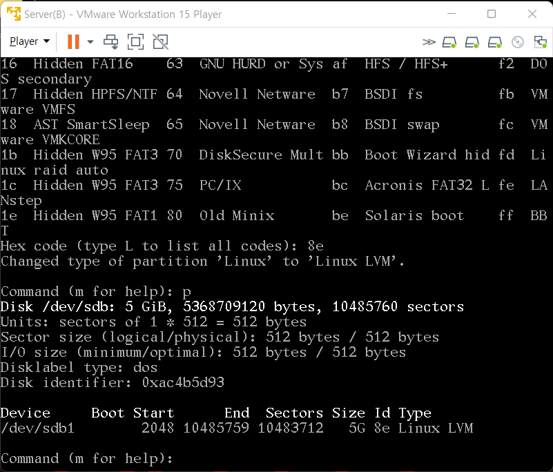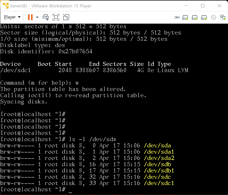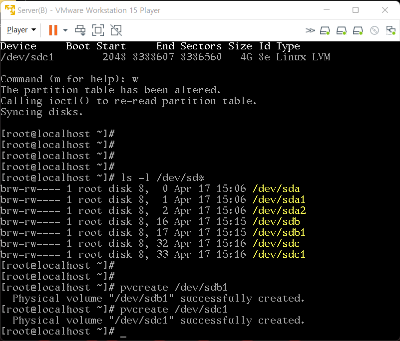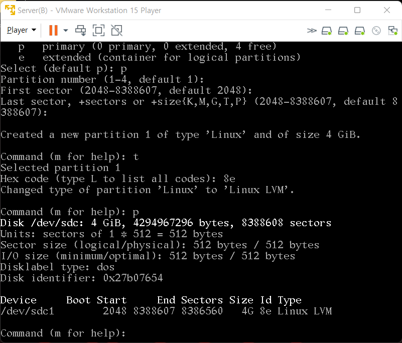 4. fdisk 작업(/dev/sdb, /dev/sdc)