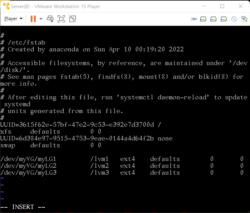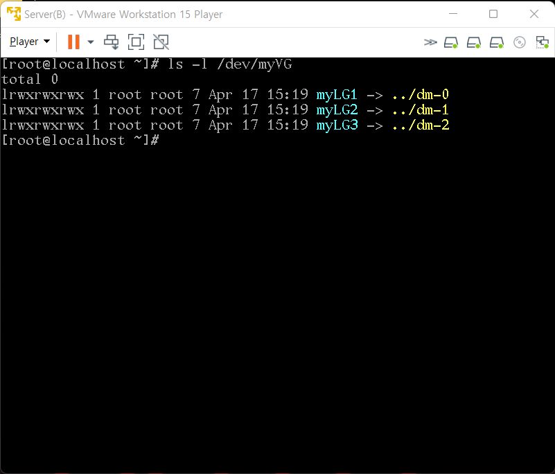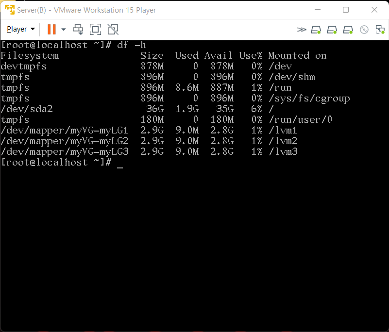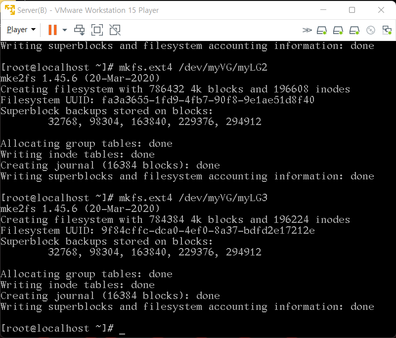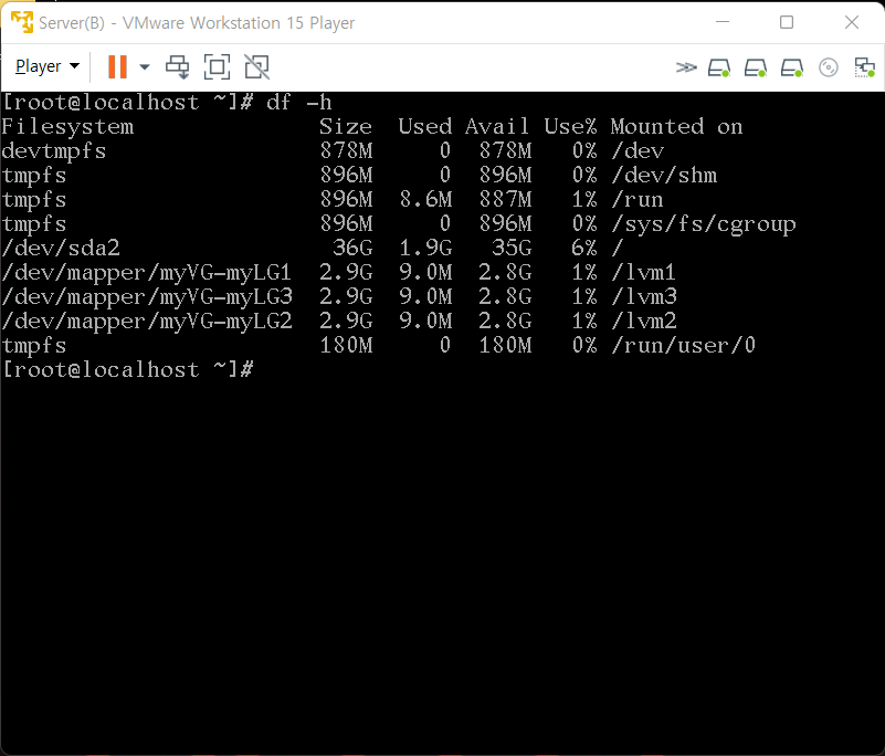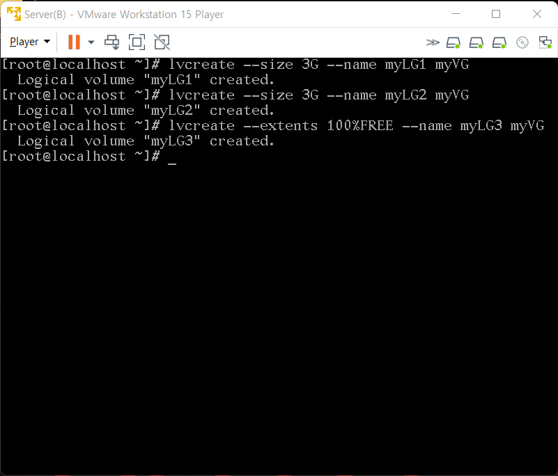 10. fdisk작업(/dev/myVG/myLG1, /dev/myVG/myLG2, /dev/myVG/myLG3)