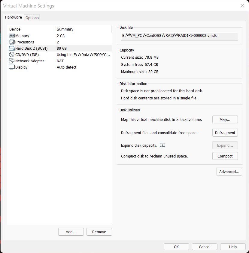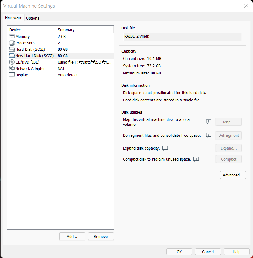만약 위와 같은 문구가 나오는 경우 복구가 안되므로 VM 재생성에서 RAID 적용 여부를 확인해야된다.