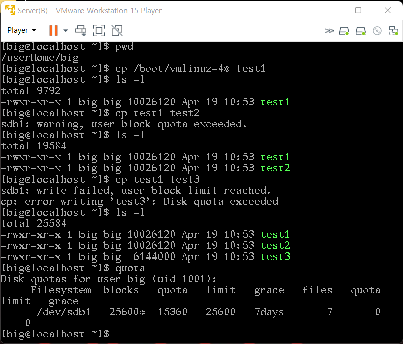 13. 사용자별 공간 할당(big -> 15MB / small -> 10MB)