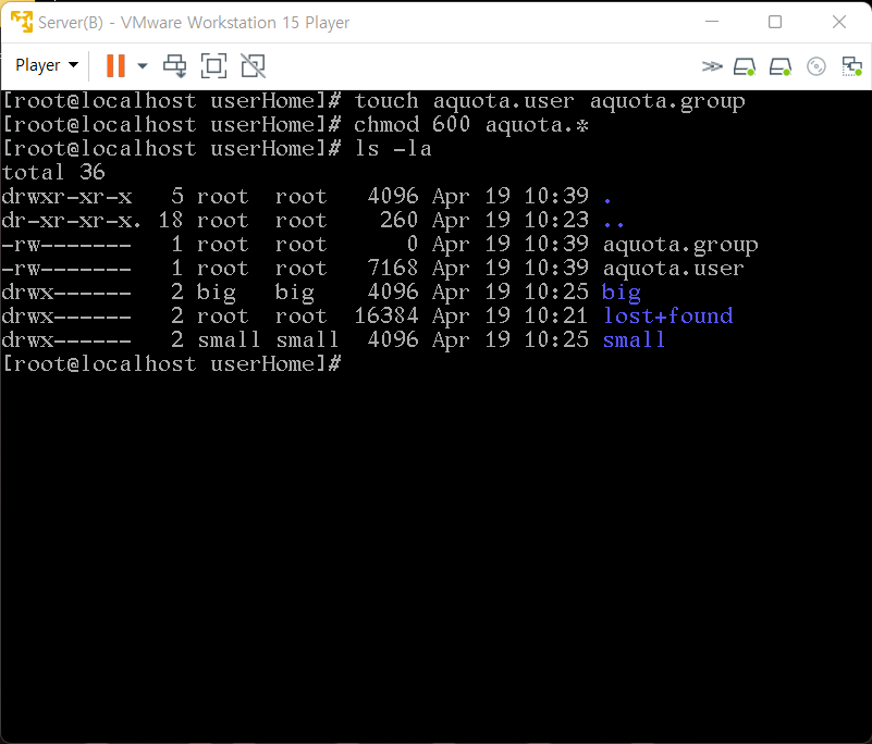 7. big / small 사용자 생성(생성 시 디렉터리는 /userHome에 생성)