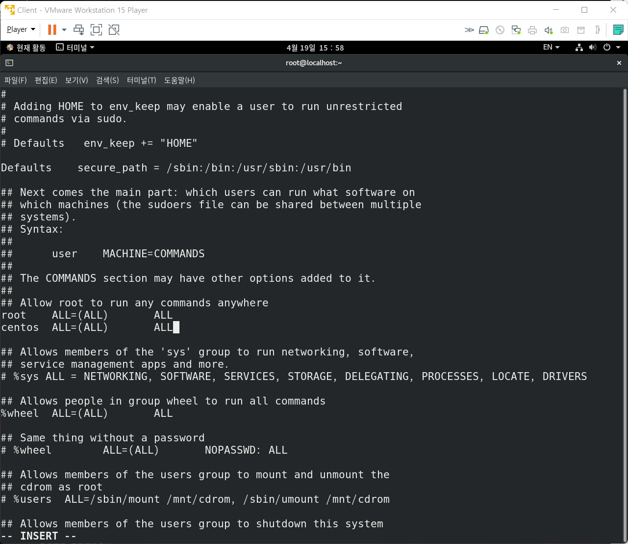 1. centos 계정에 sudo 권한 부여 작업
