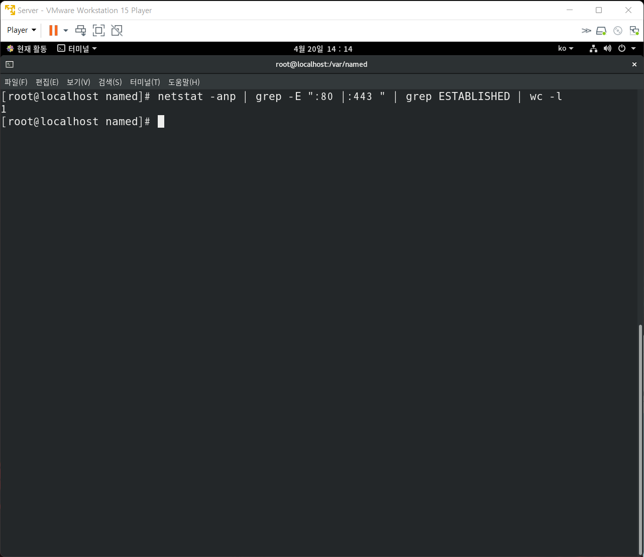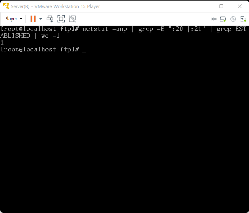 # netstat -anp | grep -E ":20|:21" | grep ESTABLISHED | wc -l