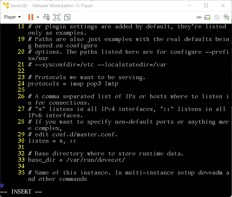 14. dovecot.conf 설정(/etc/dovecot/dovecot.conf)