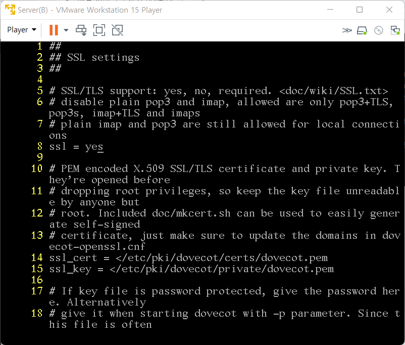 15. /etc/dovecot/conf.d/10-ssl.conf 수정(SSL 설정)