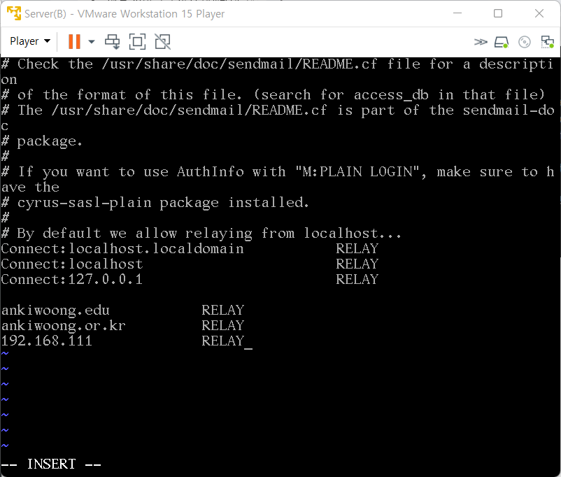 11. /etc/mail/access 수정(메일 Relay 제한 및 스팸 방지 설정 파일)