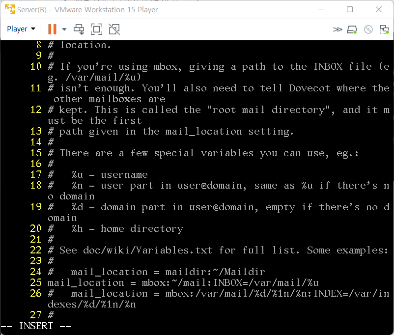16. /etc/dovecot/conf.d/10-mail.conf 수정(메일 전반에 대한 설정(메일함 등))