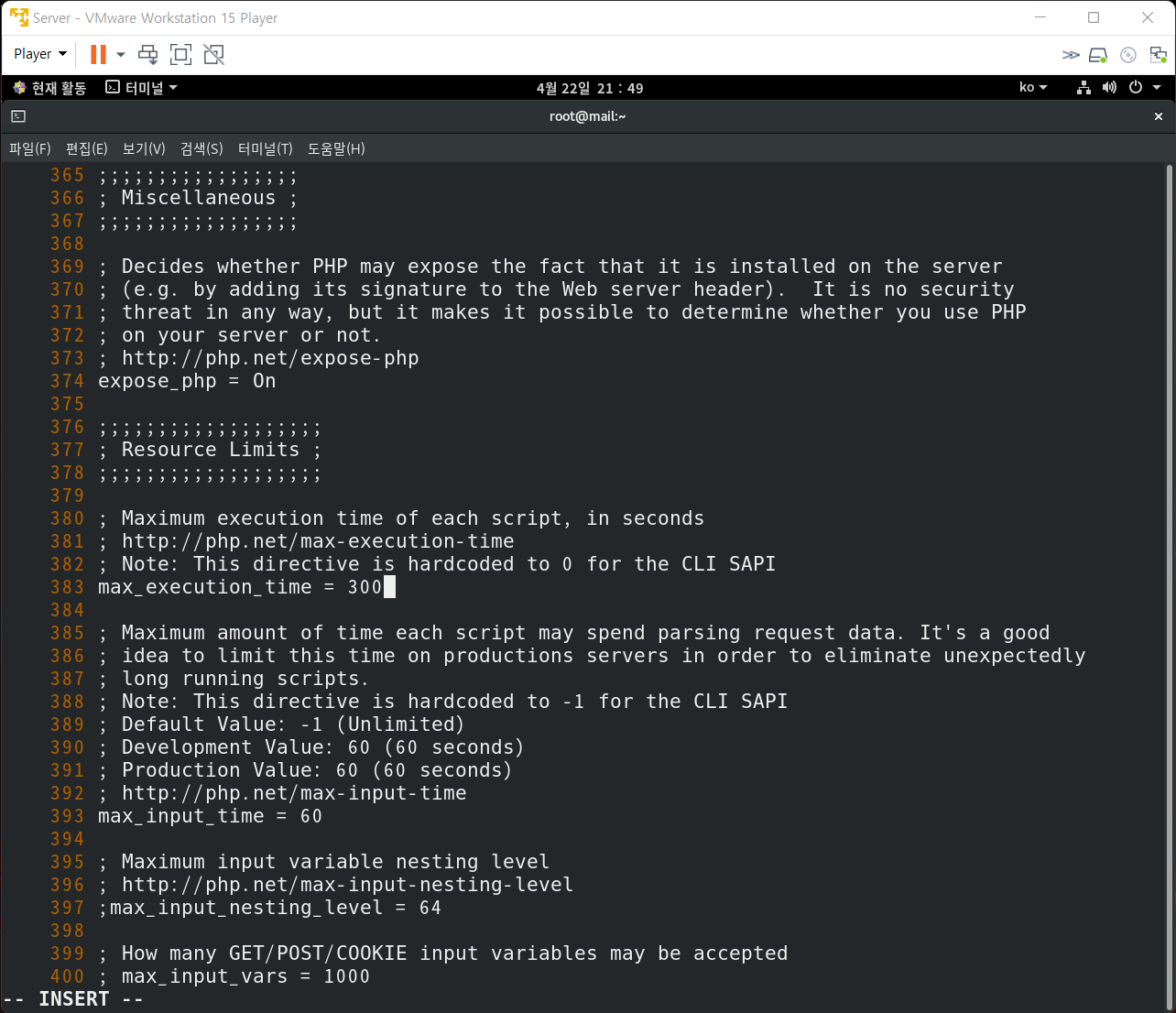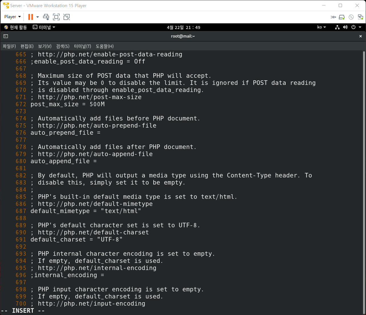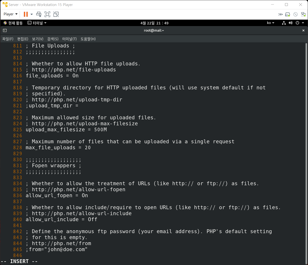 7. /etc/php.ini 수정(대용량 업로드 수정)