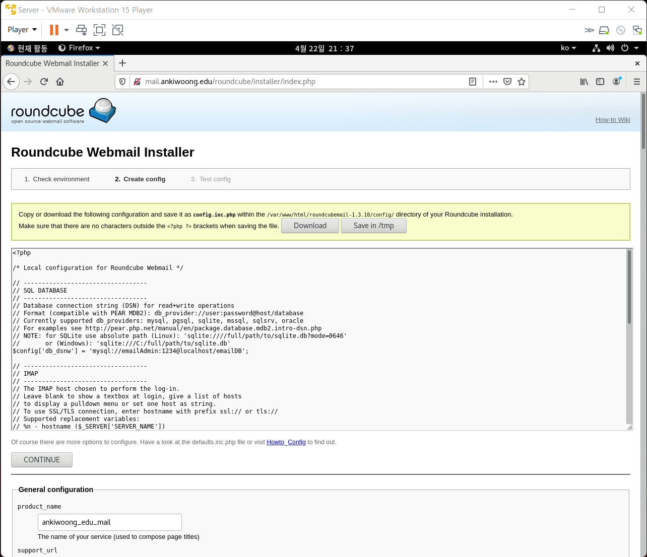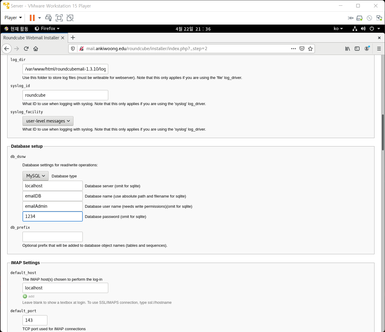 6. Roundcube 초기 설정