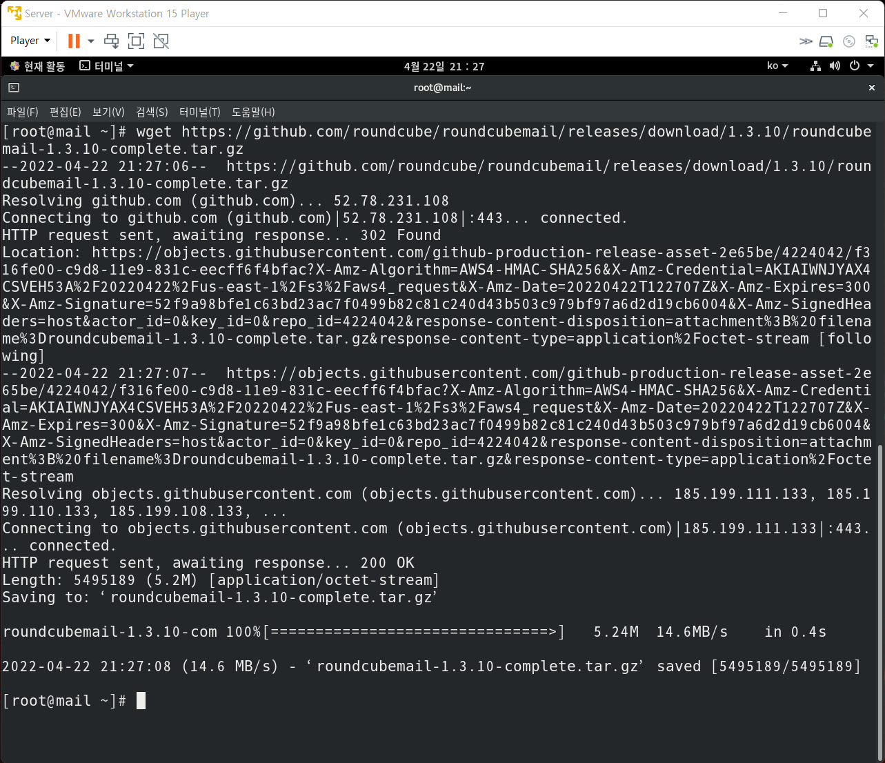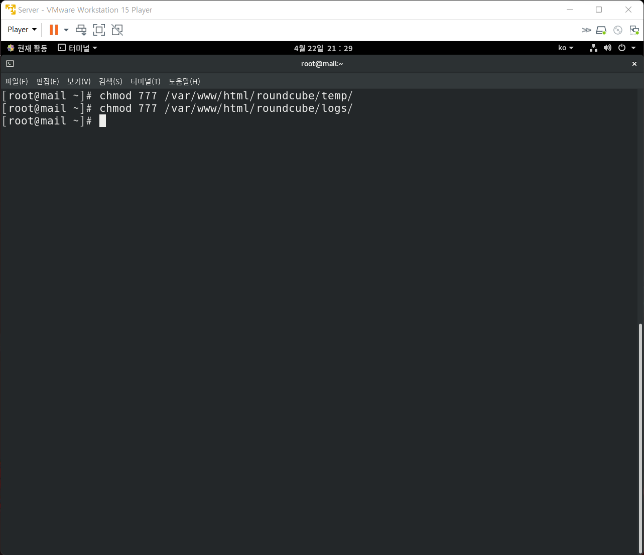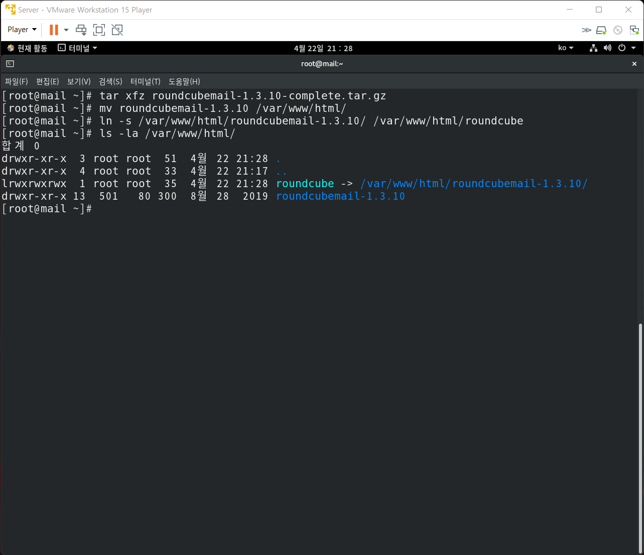 4. Roundcube 압축 해제 및 권한 변경