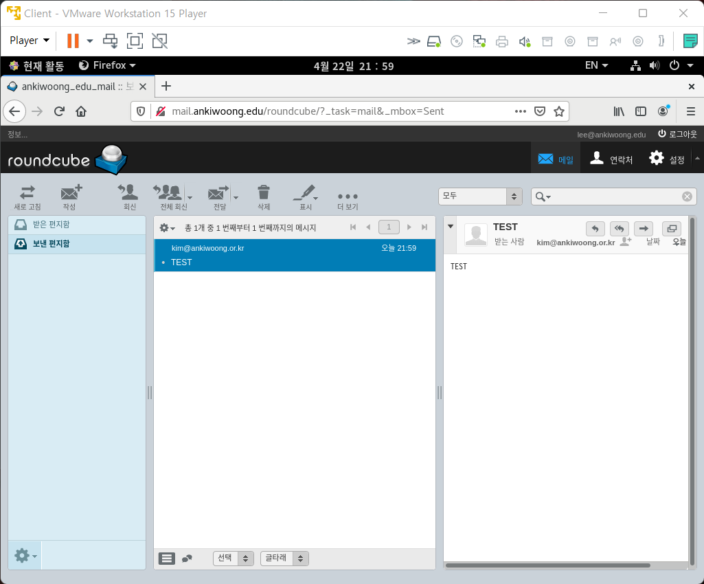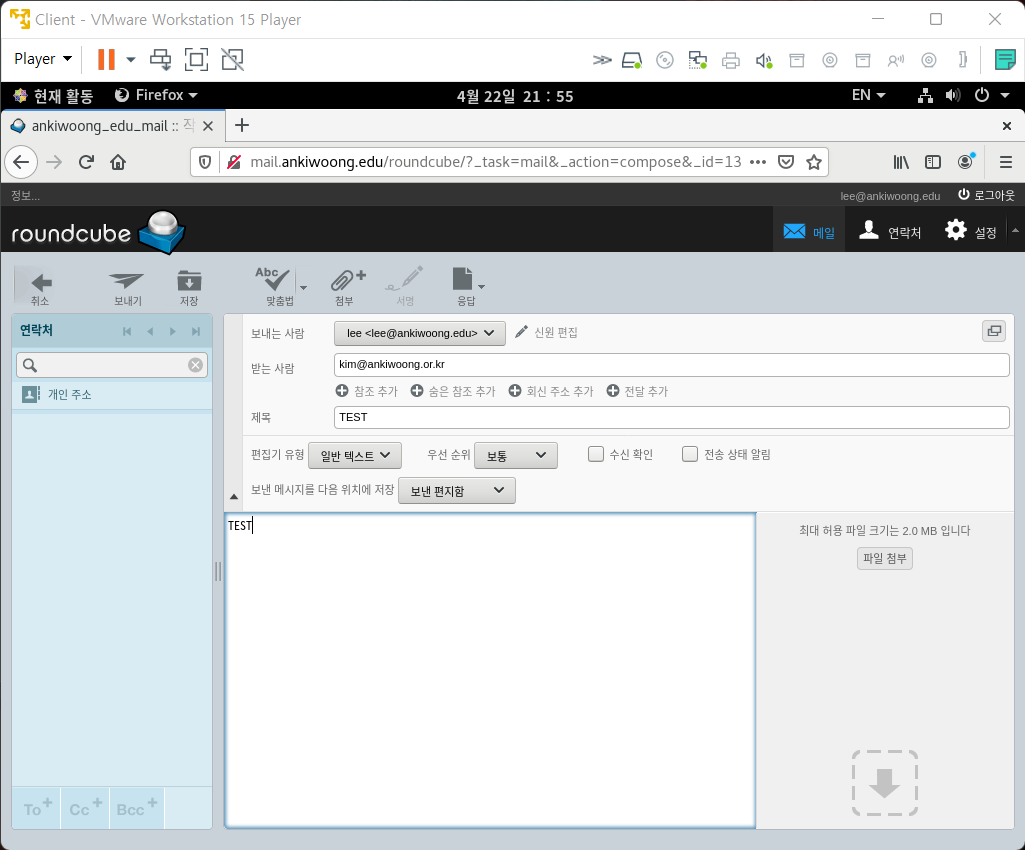 2. 메일 발신(발신 : lee@ankiwoong.edu / 수신 : kim@ankiwoong.or.kr)